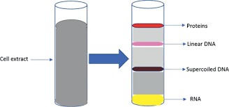 روش شیب چگالی سزیم کلرید (Cesium Chloride Gradient Centrifugation) یکی از روش های شیمیایی استخراج اسیدهای نوکلئیک است؛ این روش از دهه 50 میلادی اساس کار تحقیقات بالینی قرار گرفت. اساس این تکنیک استقرار اسیدهای نوکلئیک در نوار اختصاصی خود در شیب چگالی سزیم کلرید است، در این روش محلول سزیم کلرید و عصاره سلولی به مدت چند ساعت سانتریفیوژ می شوند و در شیب چگالی به وجود آمده مولکول ها بر اساس چگالی شناوری ویژه خود جدا می شوند. پروتئین ها دانسیته کمتری دارند و RNA و پلازمید های دارای سوپرکویل نسبت به DNA دارای دانسیته بیشتری هستند. در نهایت برای مشاهده باند DNA از اتیدیوم بروماید استفاده می شود. امروزه این روش در استخراج پلازمید کاربرد دارد. استخراج پلازمید ها از کشت باکتری مانند روش کلی خالص سازی DNA از سلول است؛ اما در استخراج پلازمید لازم است که DNA پلازمیدی از مقدار زیادی DNA باکتریایی موجود در سلول تفکیک شود. برای این منظور روش های مختلفی وجود دارد که یکی از آن ها شیب چگالی سزیم کلرید است.